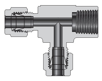 Тройник T-образный с угловой внутренней резьбой предназначен для ответвления линий метрологического и технологического оборудования, подключения приборов КИПиА, гидравлики и пневматики в коррозионных средах. Соединение выполнено по принципу обжима трубки двумя обжимными кольцами и гайкой, что обеспечивает герметичное механическое заделывание 5/8″ трубки при присоединении к резьбовому каналу NPT1/2. Резька герметизируется ФУМ-лентой (PTFE), допустима частая разборка при наладке без потери уплотнения при соблюдении правил затяжки.