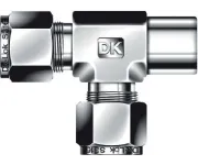 Корпус и основные элементы изготовлены из нержавеющей стали AISI 316, что обеспечивает коррозионную стойкость в агрессивных средах. Конструкция — двухкольцевая обжимная система DK‑Lok: переднее и заднее обжимные кольца плюс гайка обеспечивают повторяемую металлическую посадку трубки без дополнительных уплотнителей. Резьба — внутренняя NPT1/8 герметизируется ФУМ‑лентой. Рабочие среды: технологические газы, сжатый воздух, масла, вода и аналитические среды; типичное рабочее давление для 1/8″ трубки — порядка 414 бар (≈6000 psi) в зависимости от толщины стенки трубки; температурный диапазон эксплуатации приблизительно −60…+200 °C (зависит от применённого уплотнителя и среды).