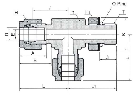Тройник T-образный с наружной резьбой и поворотным ответвлением предназначен для развязывания и распределения рабочих сред в трубопроводах и приборных линиях высокого давления. Служит для подсоединения канала с резьбой UNF 1 7/8″-12 к трубному ответвлению 1 1/2″ (38,1 мм) с применением обжимной технологии: при затяжке гайки две обжимные втулки формируют неразъемное уплотнение трубки, а выступающее уплотнительное кольцо O-ring обеспечивает герметизацию резьбового соединения при динамических и статических нагрузках. Поворотная конструкция облегчает сборку и выравнивание при монтаже в ограниченном пространстве.
