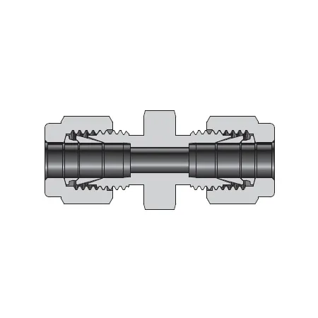 Прямой обжимной соединитель DU-18M-SA DK-Lok предназначен для герметичного соединения трубок Ø 18 мм в системах измерения и распределения рабочих сред (газ, пар, вода, масла, неагрессивные химикаты). Уплотнение обеспечивается методом механического обжима двух обжимных колец (фэрул) и контргайки: при сборке кольца деформируют трубку и создают металлическое уплотнение, исключающее контакт резьбовых соединений с рабочей средой. Конструкция решает задачи быстрой установки, повторной сборки и устойчивости к вибрации при рабочих давлениях типично до ≈350 бар (в зависимости от толщины стенки трубки и условий эксплуатации).