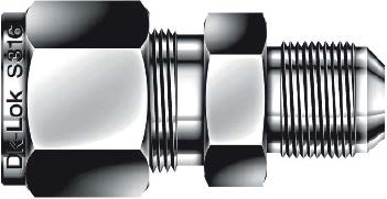 Соединитель прямой обжим‑развальцовка DUA5-5-SA DK‑Lok предназначен для переходных соединений гидравлических и технологических линий: с 5/16" трубки на 5/16" развальцовку (JIC 37°). Работает по принципу комбинированного уплотнения: с одной стороны — обжим трубки двумя обжимными кольцами и гайкой, с другой — коническое 37° уплотнение развальцовки под стандарт SAE J514 (ISO 8434‑2). Конструкция обеспечивает герметичное металлическое соединение без дополнительных уплотнений резьбы и пригодна для высоких давлений и агрессивных сред.