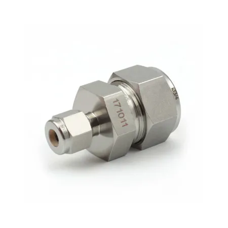 Корпус и элементы обжима выполнены из нержавеющей стали (материал корпуса AISI 316), что обеспечивает коррозионную стойкость и совместимость с агрессивными средами. Форма — прямой соединитель; тип уплотнения резьбы отсутствует, уплотнение — за счёт двух обжимных колец (фереджей) и гайки. Подключения: канал 1 — 5/8″ трубка, канал 2 — 1/2″ трубка. Двухфереджовая система снижает риск осевых перемещений и обеспечивает высокую механическую прочность при вибрации. Рекомендуется применять с трубками рекомендованных размеров и толщин стенки для достижения паспортных давлений.