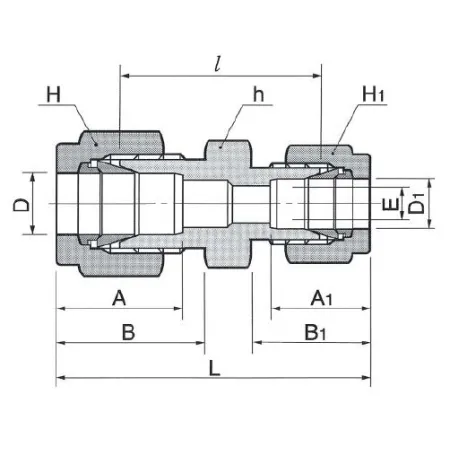 Прямой обжимной соединитель предназначен для присоединения трубок 3/4″ и 3/8″ в системах контрольно-измерительной и технологической автоматики, гидравлики и трубопроводов технологических линий. Конструкция с двумя обжимными кольцами и гайкой обеспечивает герметичное металлическое уплотнение без применения уплотнительных паст или лент; принцип работы — осевое смятие двух феррулов при затяжке гайки, формирующее прочный посадочный пояс и обеспечивающее повторяемое давление разрыва/плотности в месте сопряжения.