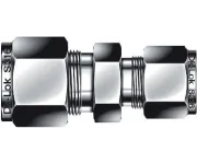 Исполнение — двухконусная система с двумя обжимными кольцами и контргайкой, корпус и кольца из нержавеющей стали AISI 316, общая категория материала — сталь нержавеющая, что обеспечивает коррозионную стойкость в агрессивных средах. Металлическое уплотнение без эластомеров расширяет рабочий температурный диапазон и совместимость со спиртами, маслами, паром и большинством технологических сред. Рабочее давление зависит от диаметра и толщины стенки трубки; для малых типоразмеров в компрессионной технике типичны значения до ≈413 бар (6000 psi), для Ø38 мм значение значительно ниже — уточняйте по таблице допуска производителя и по расчёту стенки трубки. Допустимая температура эксплуатации при металлическом уплотнении обычно от −196 °C до +400 °C в зависимости от среды.
