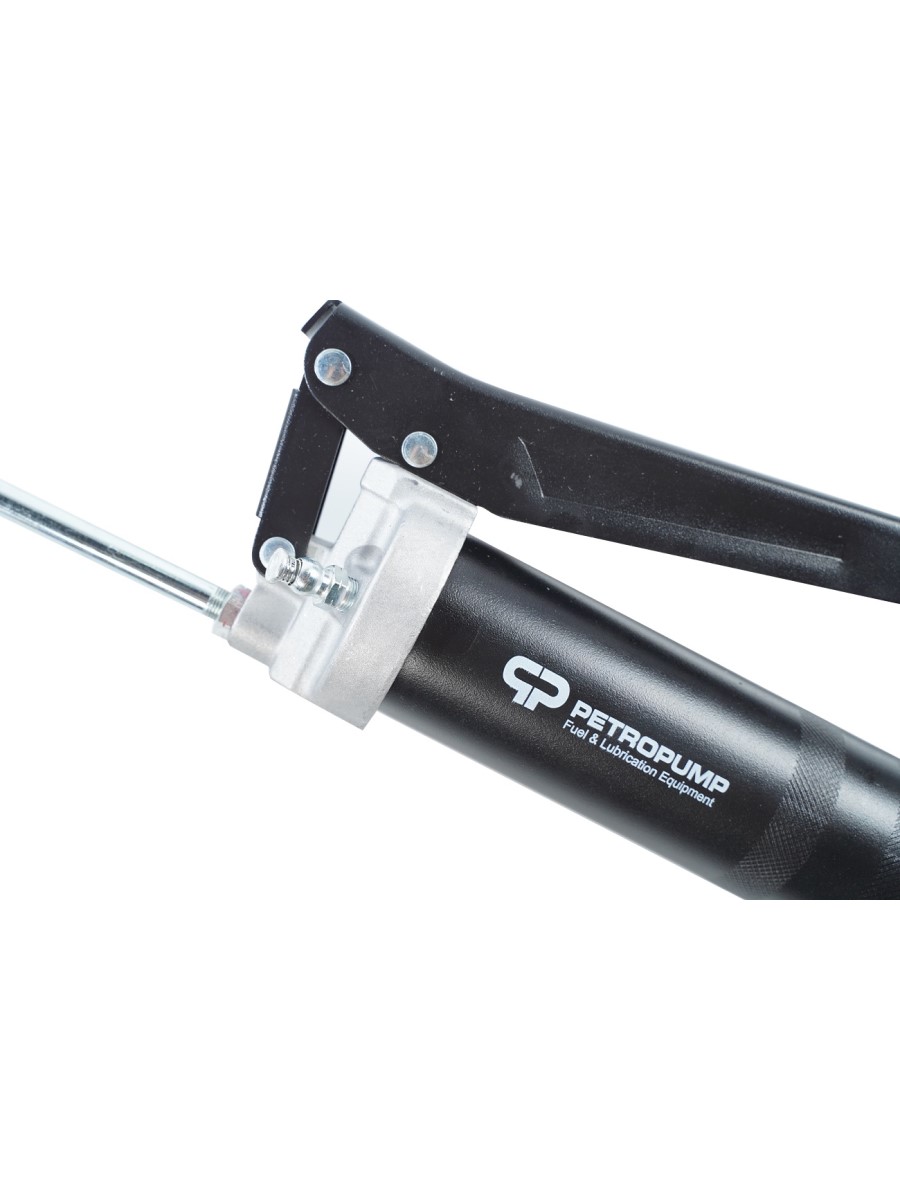Рычажный шприц для подачи консистентной смазки в рабочие узлы техники и оборудования. Производительность составляет 2,4 г/ход. Рабочее давление 413 бар. Соединение 1/8" BSPT. Объем шприца 500 см3. Оснащен жестким носиком 150 мм с 4-лепестковой насадкой.