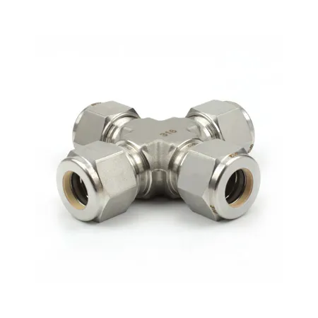 Корпус и элементы изготовления — нержавеющая сталь AISI 316, что гарантирует повышенную коррозионную стойкость к воде, парам, нефтепродуктам и агрессивным рабочим средам. Форма — X‑образная крестовина с четырьмя ответвлениями, конструкция — обжим трубки с помощью двух обжимных колец и гайки; тип уплотнения резьбы отсутствует (металло‑металлическое уплотнение). Подключение рассчитано на трубку Ø 28 мм; фактические предельные характеристики зависят от наружного диаметра/толщины стенки трубки и требований производителя.