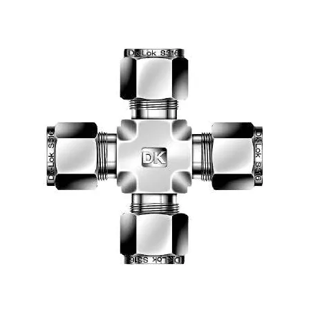 Корпус и рабочие детали — нержавеющая сталь AISI 316, классическая для агрессивных сред и коррозионностойких систем. Исполнение — обжим с двумя кольцами и гайкой на каждом ответвлении; крестовина X-образная обеспечивает четыре одинаковых патрубка. Рабочие среды: сжатые газы, технологические и аналитические жидкости, масла и неконденсирующиеся агрессивные среды; тип уплотнения резьбы отсутствует. Типичные эксплуатационные параметры для аналогичных обжимных фитингов из AISI 316: рабочее давление до 400 бар (зависит от условий и толщины стенки трубки) и температурный интервал примерно от −60 °C до +200 °C, при необходимости уточняйте по рабочей среде и проектным расчетам.