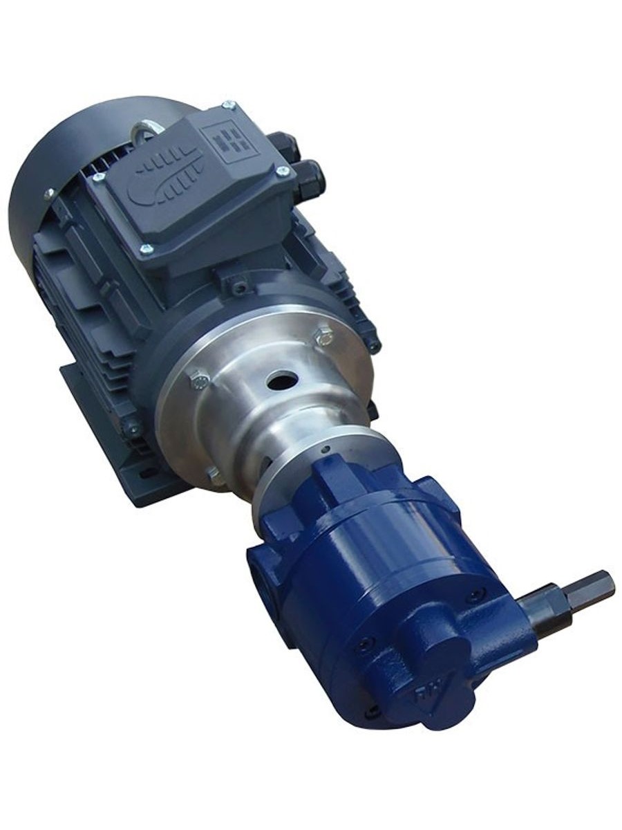Высокопроизводительный самовсасывающий шестеренчатый электронасос для смазывающих материалов, производительностью 83 л/мин. Оборудован клапаном рециркуляции by-pass. Двигатель насоса 230/400 V AC, трехфазный, 1,500 об/мин. Класс защиты IP-55. Максимальное давление 10 бар. Подключение вход/выход: 1 1/4” BSP