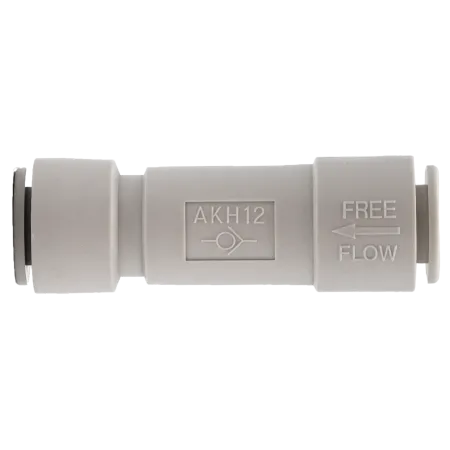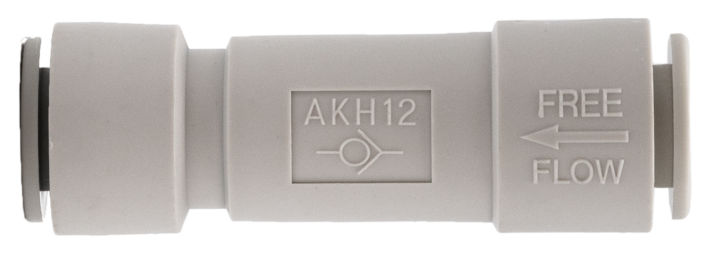 - Цанговые фитинги с обеих сторон позволяют устанавливать обратные клапаны непосредственно в разрез пластиковой трубки;