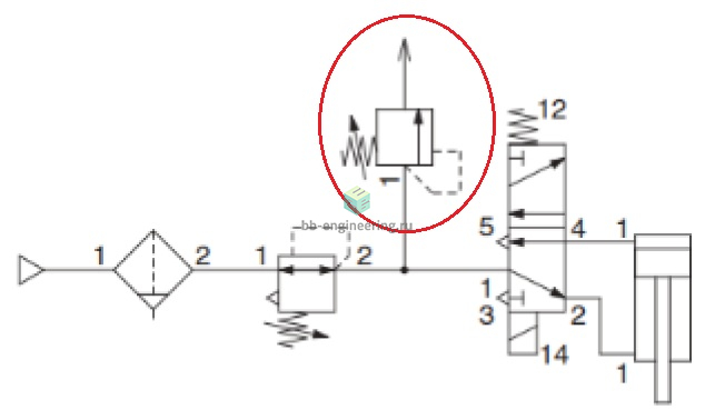 - Давление, превышающее заданное, сбрасывается в атмосферу, чтопозволяет поддерживать давление в системе