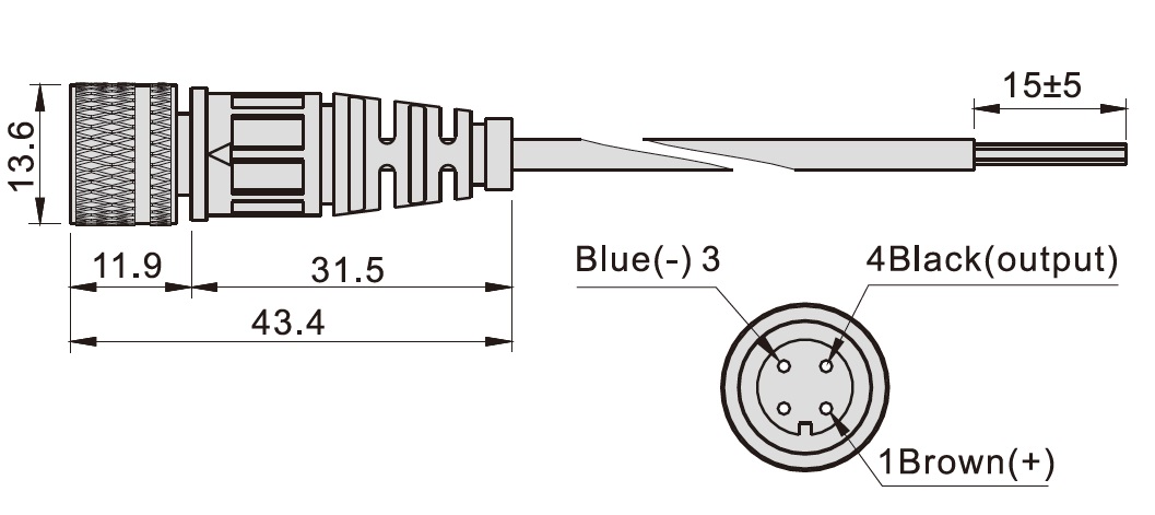 Электрическое подключение: разъём M12x1 4-пин мама, кабель • Длина кабеля: 5м