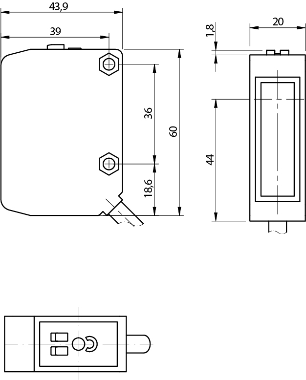 - датчик типа световой барьер: комплект передатчик + приемник
