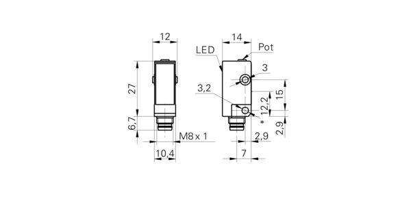 Дискретный выход: NPN • Диапазон измерения: 30 мм • Исполнение: с подавлением заднего фона • Электрическое подключение: разъём M8x1 4-пин • Класс защиты: IP67 • Рабочее напряжение: 12 ÷ 24 V DC • Материал корпуса: пластик