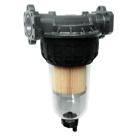 Патронный фильтр с прозрачным корпусом и заменяемым патроном могут применяться как в аспирации, так и на напорной линии. Данный фильтр оснащен патроном без поглощения воды. Благодаря прозрачной емкости можно постоянно контролировать визуально количество имеющихся примесей или задержанной воды. Клапан, расположенный на дне резервуара позволит необходимую очистку от воды или примесей, осевших на дно.