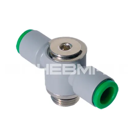 Фитинг цанговый двойной угловой поворотный наруж. резьба M5 под трубку 4 мм