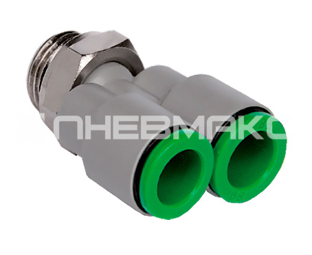 Тройник - переходник цанговый из технополимера наруж. резьба G1/4" под трубку 6 мм,тип "Y"