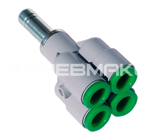 Коллектор - переходник цанговый из технополимера под трубку 6мм с штуцером под цангу 6мм, тип "2Y"