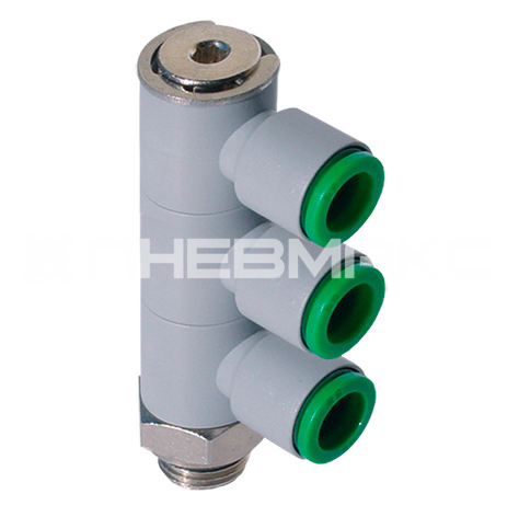 T340614 PNEUMAX - Разветвитель с серьгой с нар. резьбой тройной цанговый G1/4-6 мм