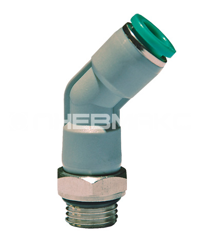 Фитинг цанговый угловой поворотный из технополимера наруж. резьба G1/4" под трубку 6 мм, 45 град