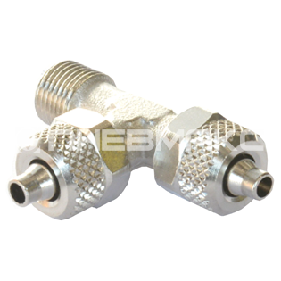 3081018 PNEUMAX - Тройник T-образный с нар. резьбой угловой с накидной гайкой R1/8-10/8 мм
