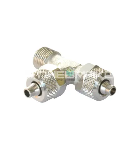3081238 PNEUMAX - Тройник T-образный с нар. резьбой угловой с накидной гайкой R3/8-12/10 мм