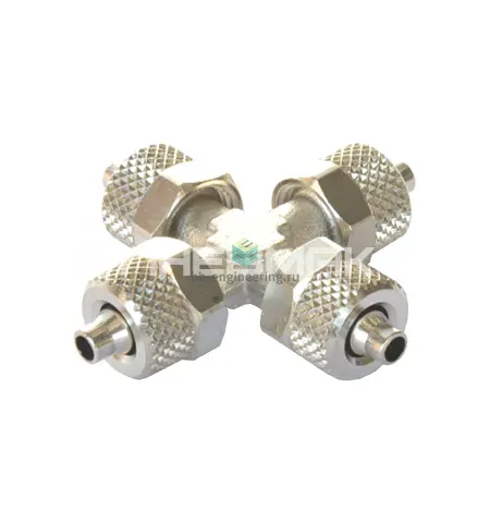 Фитинг-четверник с накидными гайками под трубку 10/8 мм