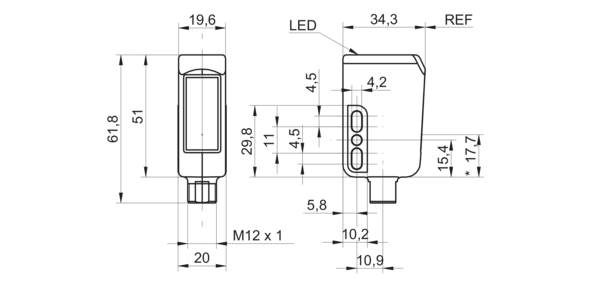 Дискретный выход: PNP/NPN • Диапазон измерения: 800 мм • Электрическое подключение: разъём M12x1 • Класс защиты: IP68, IP69K • Рабочее напряжение: 12 ÷ 24 V DC • Материал корпуса: сталь нержавеющая