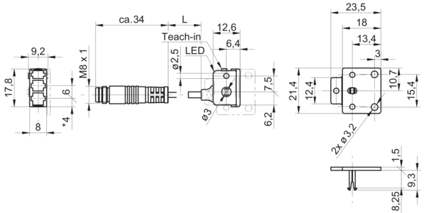 Дискретный выход: PNP • Диапазон измерения: 800 мм • Электрическое подключение: разъём M8x1 4-пин, кабель • Длина кабеля: 0.2м • Класс защиты: IP65 • Рабочее напряжение: 12 ÷ 24 V DC • Материал корпуса: пластик