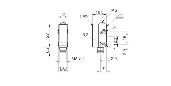 Дискретный выход: PNP • Диапазон измерения: 4000 мм • Электрическое подключение: разъём M8x1 4-пин • Класс защиты: IP67 • Рабочее напряжение: 12 ÷ 24 V DC • Материал корпуса: пластик