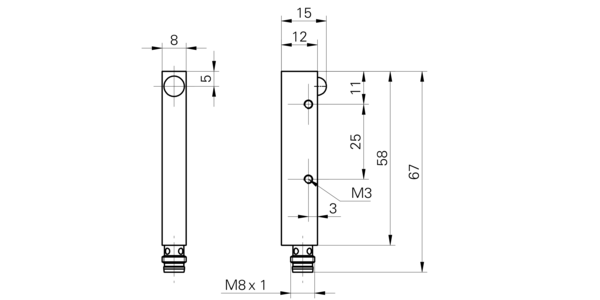 Диапазон измерения: 3000 мм • Электрическое подключение: разъём M8x1 3-пин • Класс защиты: IP65 • Рабочее напряжение: 12 ÷ 24 V DC • Материал корпуса: алюминий
