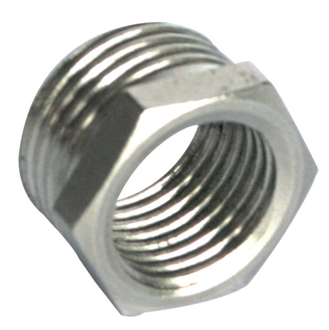 Форма фитинга: футорка • Подключение: G3/8-G1/8 • Материал корпуса: латунь никелированная