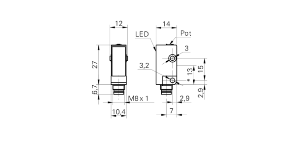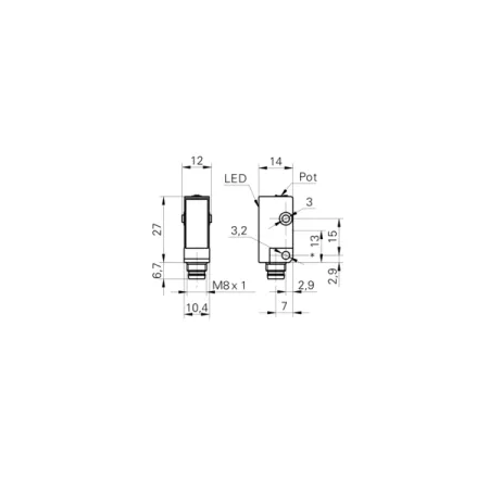 Дискретный выход: PNP • Диапазон измерения: 200 мм • Электрическое подключение: разъём M8x1 4-пин • Класс защиты: IP67 • Рабочее напряжение: 12 ÷ 24 V DC • Материал корпуса: пластик