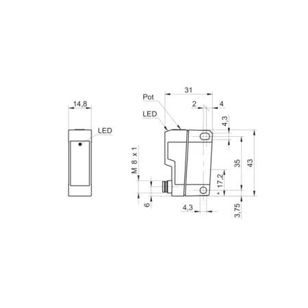 Дискретный выход: NPN • Диапазон измерения: 600 мм • Электрическое подключение: разъём M8x1 4-пин • Класс защиты: IP67 • Рабочее напряжение: 12 ÷ 24 V DC • Материал корпуса: пластик