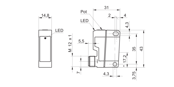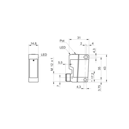 Дискретный выход: PNP • Диапазон измерения: 600 мм • Электрическое подключение: разъём M12x1 4-пин • Класс защиты: IP67 • Рабочее напряжение: 12 ÷ 24 V DC • Материал корпуса: пластик