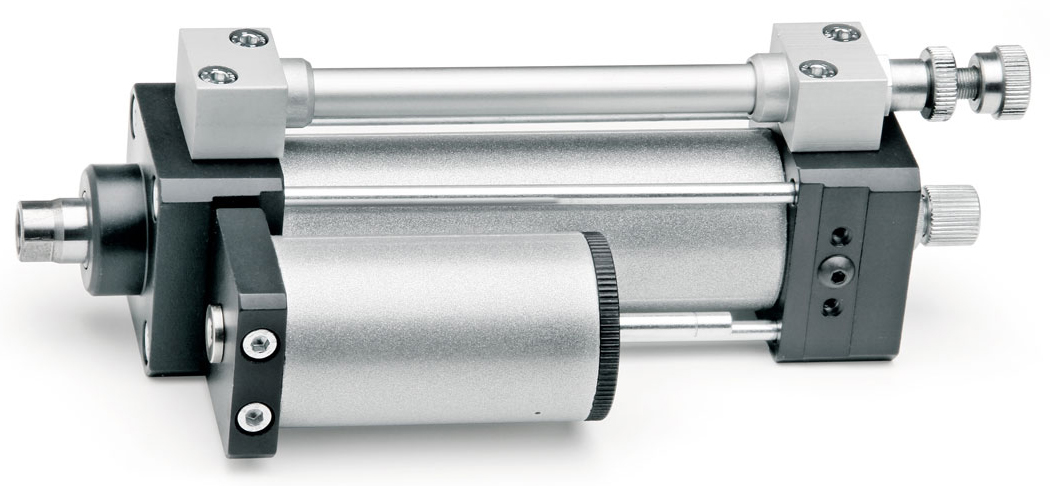 Цилиндры двустороннего действия имеют два отверстия для подвода сжатого воздуха – для выдвижения и втягивания штока соответственно.