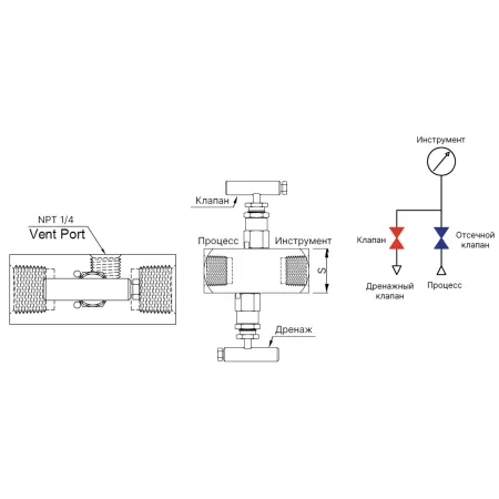 Выхлоп/сброс/дренаж (каналы 3/R, 5/S)