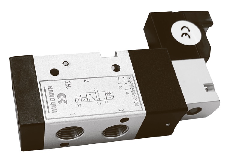 3/2 распределитель с электромагнитным управлением и пилотным каскадом.
