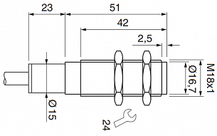 Дискретный выход: НО, PNP • Номинальная дистанция переключения: 5мм • Электрическое подключение: кабель • Длина кабеля: 1м • Крепежная резьба: M18x1 • Класс защиты: IP68, IP69 • Рабочее напряжение: 12 ÷ 24 V DC • Материал корпуса: сталь нержавеющая