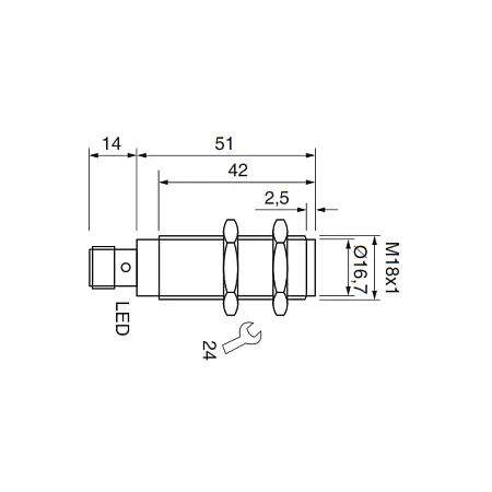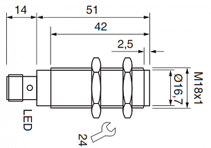 Дискретный выход: НО, сухой контакт • Номинальная дистанция переключения: 5мм • Электрическое подключение: разъём M12x1, кабель • Крепежная резьба: M18x1 • Класс защиты: IP68, IP69 • Рабочее напряжение: 5 ÷ 30 V DC • Материал корпуса: сталь нержавеющая