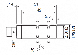 Дискретный выход: НО, PNP • Номинальная дистанция переключения: 5мм • Электрическое подключение: разъём M12x1, кабель • Крепежная резьба: M18x1 • Класс защиты: IP68, IP69 • Рабочее напряжение: 12 ÷ 24 V DC • Материал корпуса: сталь нержавеющая