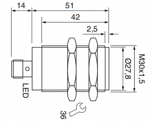 Дискретный выход: НО, PNP • Номинальная дистанция переключения: 10мм • Электрическое подключение: разъём M12x1, кабель • Крепежная резьба: M30x1.5 • Класс защиты: IP68, IP69 • Рабочее напряжение: 12 ÷ 24 V DC • Материал корпуса: сталь нержавеющая