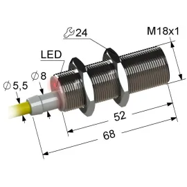 Дискретный выходНЗ, NPN Тип установкизаподлицо Номинальная дистанция переключения8 Электрическое подключениекабель Длина кабеля3 Крепежная резьбаM18x1 Корпуслатунь