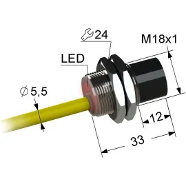 Дискретный выходНЗ, NPN Тип установкивыступающий Номинальная дистанция переключения12 Электрическое подключениекабель Длина кабеля3 Крепежная резьбаM18x1 Корпуслатунь
