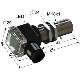 Дискретный выходНО/НЗ (перекидной), PNP Тип установкизаподлицо Номинальная дистанция переключения8 Электрическое подключениекабель Длина кабеля3 Крепежная резьбаM18x1 Корпуслатунь