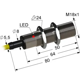 Дискретный выходНО, NPN Тип установкизаподлицо Номинальная дистанция переключения5 Электрическое подключениекабель Длина кабеля3 Крепежная резьбаM18x1 Корпуслатунь