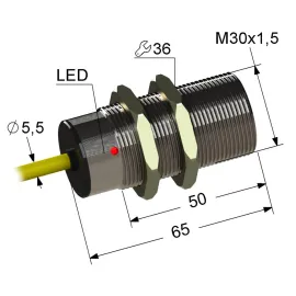 Дискретный выходНО, NPN Тип установкизаподлицо Номинальная дистанция переключения12 Электрическое подключениекабель Длина кабеля3 Крепежная резьбаM36x1.5 Корпуслатунь