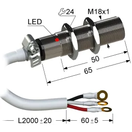 Дискретный выходНО, NPN Тип установкизаподлицо Номинальная дистанция переключения5 Электрическое подключениекабель Длина кабеля3 Крепежная резьбаM18x1 Корпуслатунь