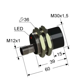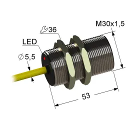 Дискретный выходНЗ, NPN Тип установкивыступающий Номинальная дистанция переключения15 Электрическое подключениекабель Длина кабеля3 Крепежная резьбаM30x1.5 Корпуслатунь