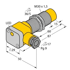 Дискретный выходНО, NPN Тип установкивыступающий Номинальная дистанция переключения20 Электрическое подключениеразъём M12x1 Крепежная резьбаM30x1.5 Корпуспластик ПроизводительTURCK