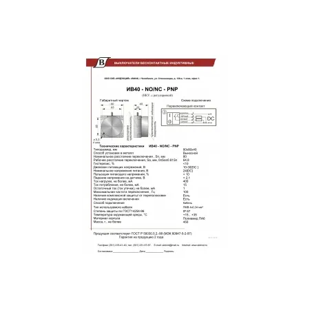 Описание ИВ40-NO/NC-PNP